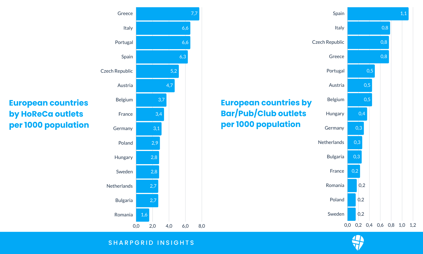 - 7.66 HoReCa outlets per 1,000 people - the highest density in Europe.