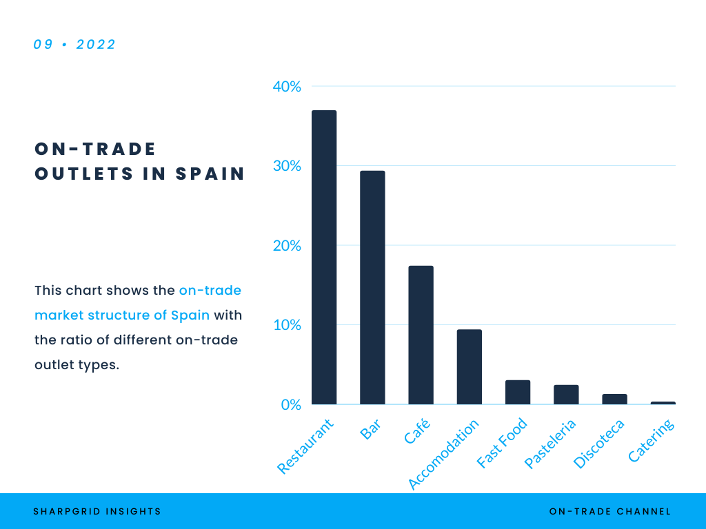 Note that have merged the bars and pubs category as in Spain they are very often interchangeable and may signify a similar type of outlet.
